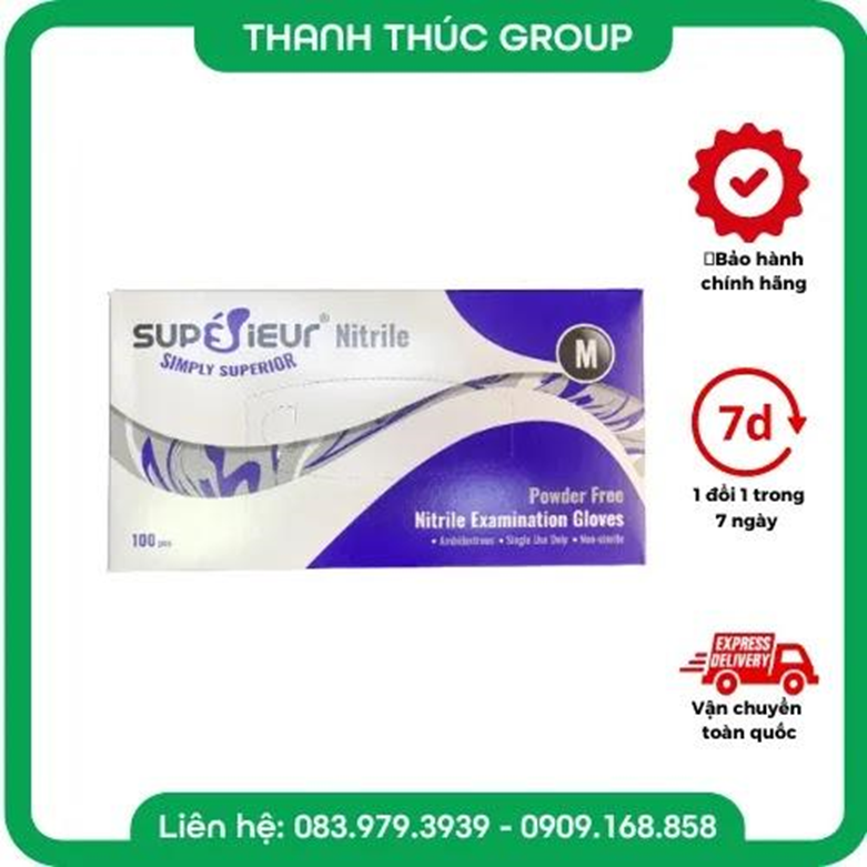 Găng Tay Y Tế Màu Đen Cao Cấp Không Bột Nitrile Superieur Hộp 100 Cái
