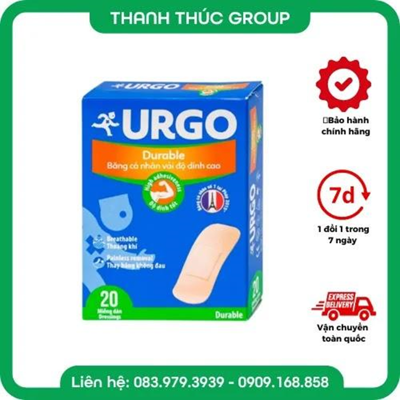 [ Hộp 20 cái] Băng cá nhân Urgo Durable bảo vệ vết thương