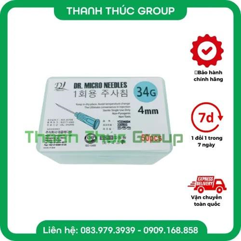 Hộp 50 Đầu Kim Tiêm Dr.Micro Needles 34g 4mm